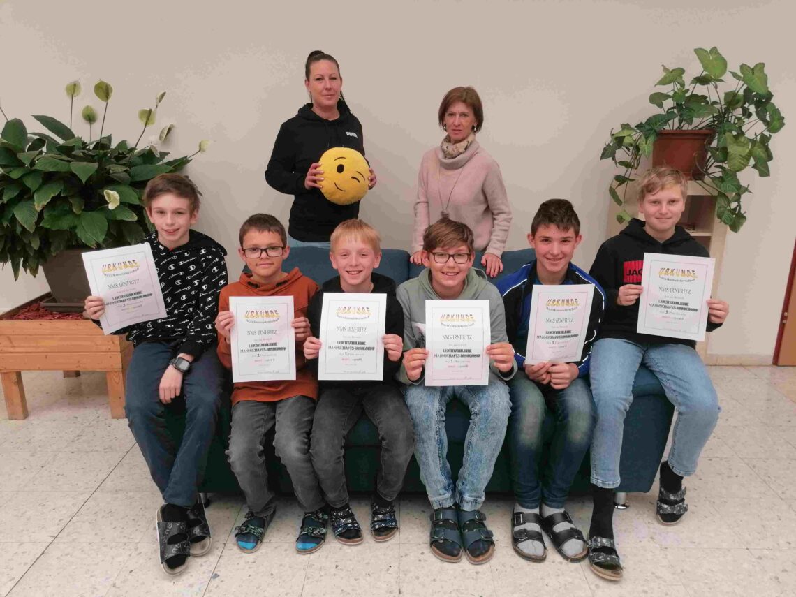 Die Knabenmannschaft Gruppe D der MS Irnfritz erreichte beim diesjährigen Leichtathletikmannschaftsdreikampf in Horn den sehr guten 3. Platz und durfte dafür bei der Siegerehrung eine Urkunde entgegennehmen. Ausgetragen wurde der Bewerb am Sportplatz des Gymnasiums in Horn. Die Sportlehrerin Nicolina Bör und Irene Herzog-Genner freuten sich mit den Kindern über die guten Leistungen.