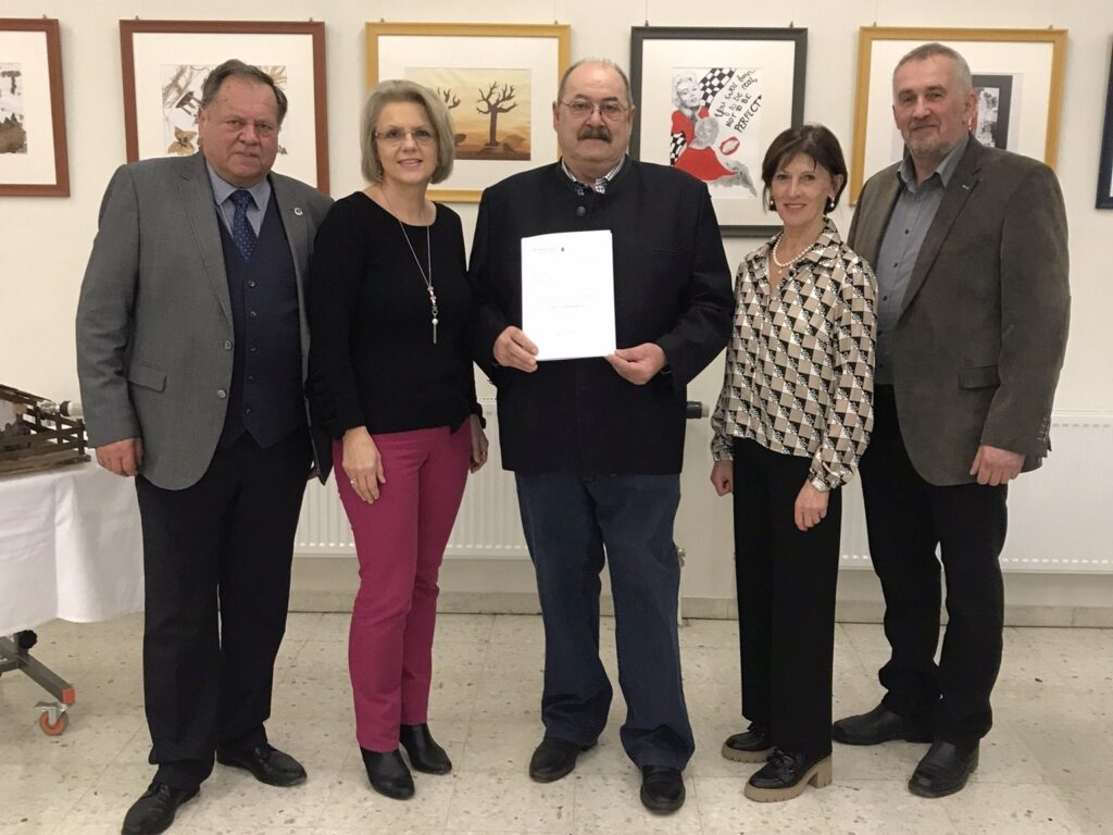 Herr BM Karl Braunsteiner erhielt für sein Wirken als Obmann-Stellvertreter des Mittelschulausschusses Dank und Anerkennung seitens der Bildungsdirektion, überreicht von Frau Schulqualitätsmanagerin Andrea Strohmayer. Dir. Irene Herzog-Genner ließ sein engagiertes Wirken im Team des Mittelschulausschusses für die Schule und das Engagement für die Bildung der Schulkinder Revue passieren. BM Braunsteiner dankte mit den Worten „Zu einer guten Pädagogik gehört eben auch der entsprechende Rahmen“. Im gemütlichen Teil wurde dann augenzwinkernd so manche Anekdote während der Sanierung des Schulgebäudes und des Turnsaales vorgebracht.