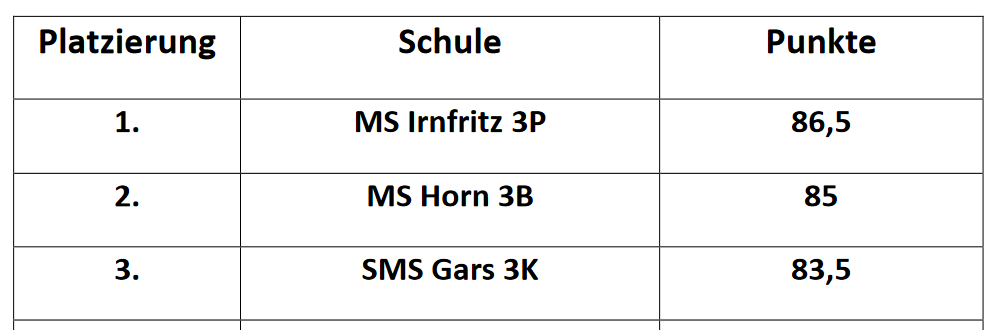 1. Platz bei den Wasserjugendspielen 2023 in Gars am Kamp. Sowohl die MathematikerInnen, die „Geschickten“ als auch die Pflanzen- und Tierkundigen unter unseren SchülerInnen der 3P konnten sich knapp mit 86,5 Punkten gegenüber die MS Horn und SMS Gars durchsetzen.